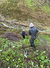 Zum siebten Mal fand Ende Mai die Freiwilligenwoche in Zusammenarbeit mit dem Österreichischen Alpenverein im Garneratal statt. Fast schon traditionell zeigte sich das Wetter nicht von der besten Seite – den Widrigkeiten zum Trotz wurde mit aller Kraft gearbeitet und wirklich viel geleistet! Lawinen-Aufräumarbeiten gab es dieses Jahr nicht viel, dafür konnen wir uns verstärkt dem Schwenden und Germer-Ausstechen widmen. Zum Abschluß konnte noch die Ankunft der Tiere am Ganeu beim "z'Maisäßfahra" samt Benediktion miterlebt werden. Danke an alle die dabei waren, die treuen Stammhelfer, die Neulinge, die sich auf dieses Abenteuer eingelassen haben und die Garnera-Familie, die an allen Ecken und Enden mitgeholfen hat. Nächstes Jahr gerne wieder!